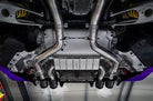 Exhaust system, for use with OEM actuators, middle silencer replacement pipes, 200 cell sport cats as replacement for OEM OPF, anodized aluminum tailpipes (black, red, silver*) and aluminum outer sleeve in wicrom black velour
