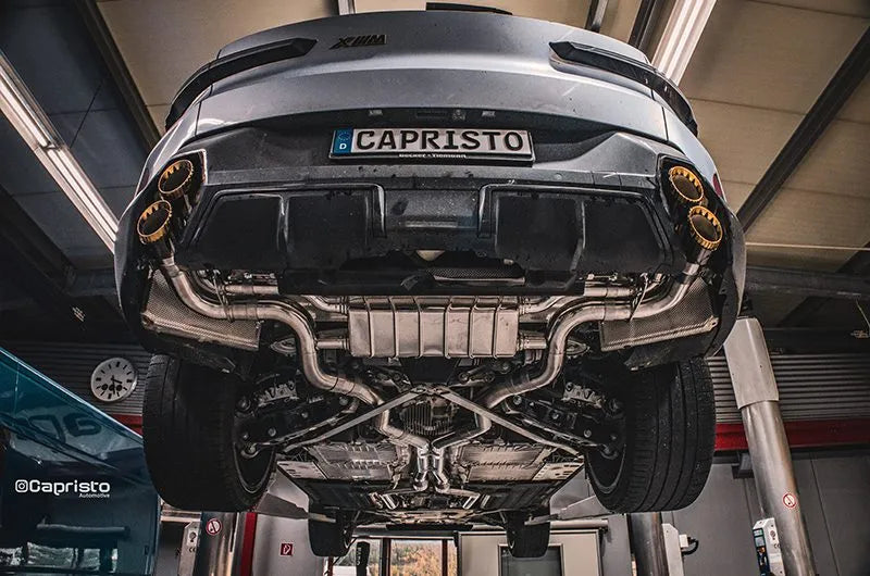 Capristo complete system including sports cats without approval for BMW XM G09 with black aluminum tailpipes