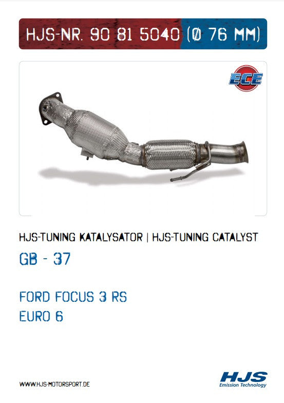 90815040 HJS ECE Downpipe / Kat Ford Focus RS MK III (2.5 - Euro 6)
