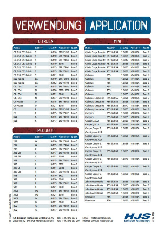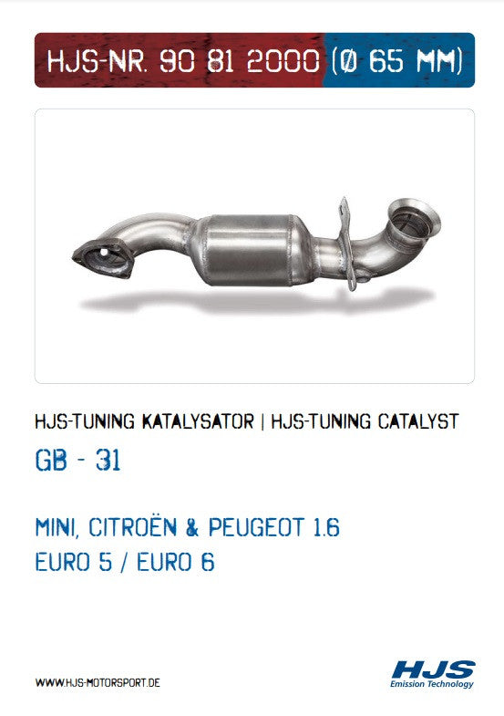 90812000 HJS ECE Downpipe / Kat Mini R55-R60 / Citroen / Peugeot 1.6 - Euro 4 - 6