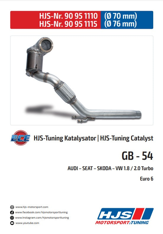 90951115 HJS ECE Downpipe / Kat Audi A3 III / Leon Cupra III / Octavia RS III / VW Golf VII GTI