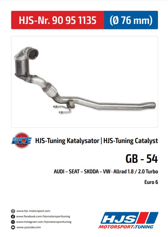 90951135 HJS ECE Downpipe / Kat Audi S3 III / Seat Leon ST III / Skoda Superb III / VW Golf VII R (2