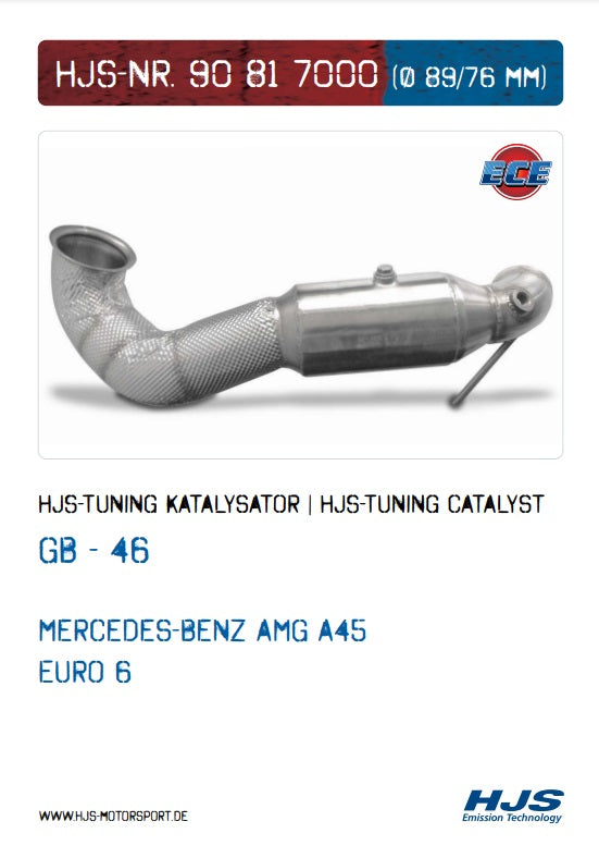 90817000 HJS ECE Downpipe / Kat Mercedes AMG A45 / CLA45 / GLA45 (2.0 - Euro 6)